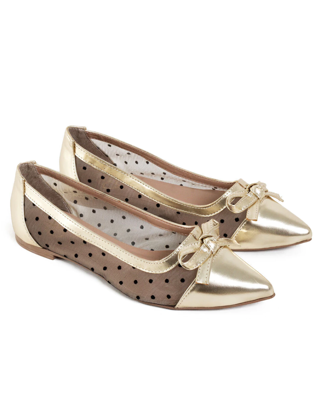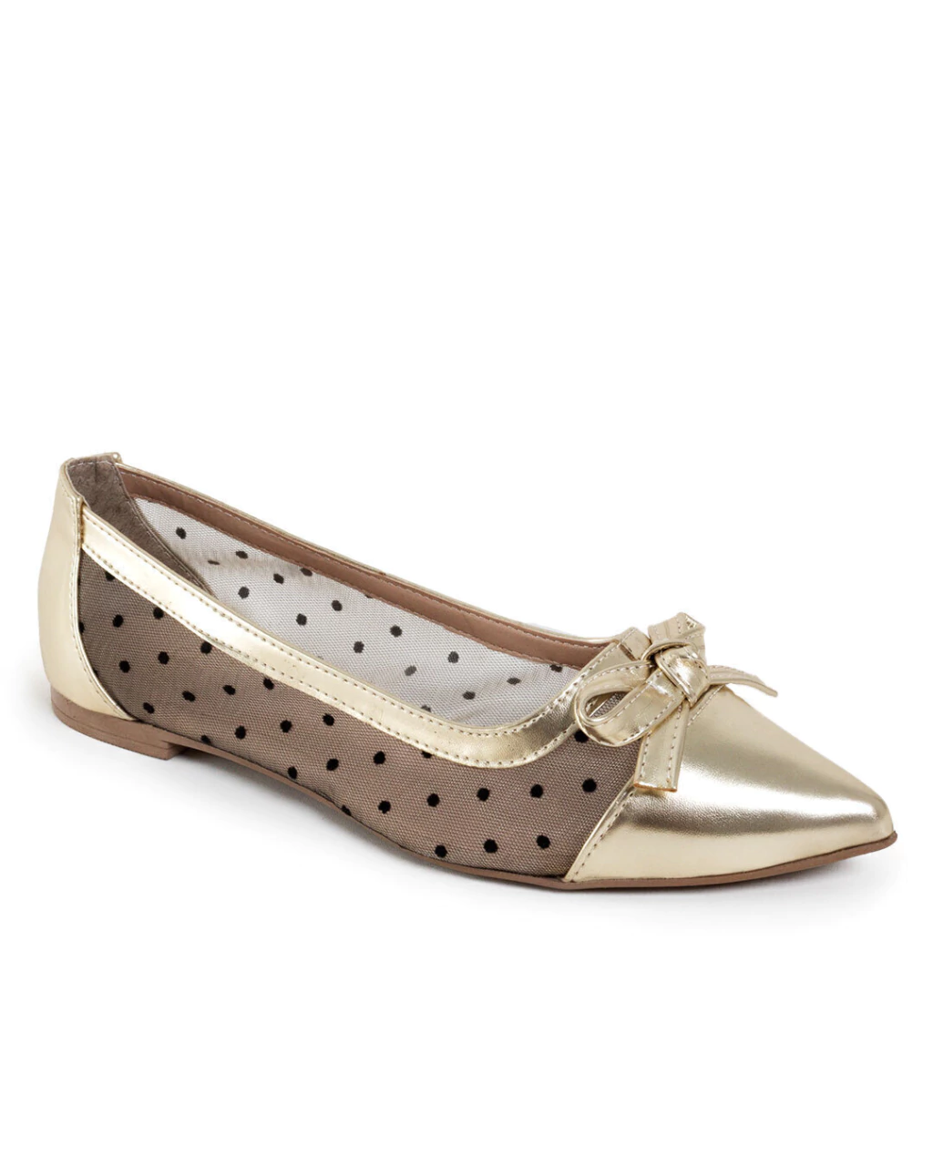 Sapatilha dourada no nobuck com tela e poás